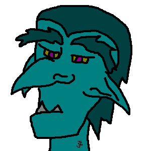 Balah's player is an amazing artist, as you can clearly see. On Farn's belt is his (fake) constable's badge, and he's got the bottle at hand since at this point he had gotten heavily into drinking. (Just like his original name inspiration, Farnham from Diablo 1!)